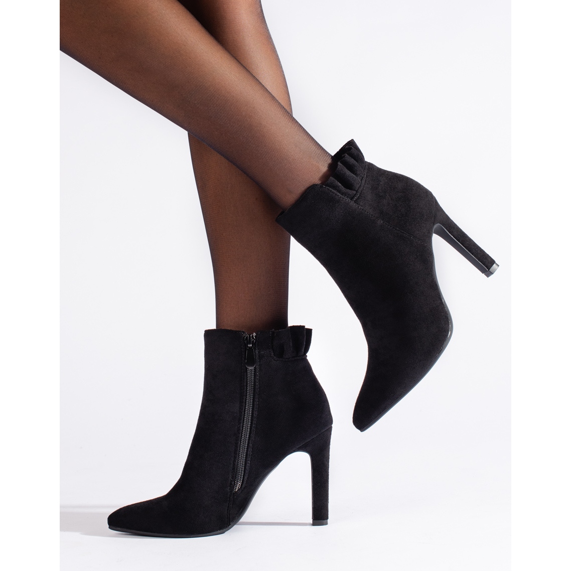 A dizájnt elegáns hegyes orr jellemzi, amely eleganciát ad és optikailag meghosszabbítja a lábat. A 10 cm magas tűsarkú lenyűgöző sziluettet garantál, kiemeli a lábak formáját és magabiztosságot ad a lépésében. A karcsú, boka fölé érő felsőrész rendkívül univerzálissá teszi őket - ruhákhoz és farmerekhez egyaránt viselhető.
