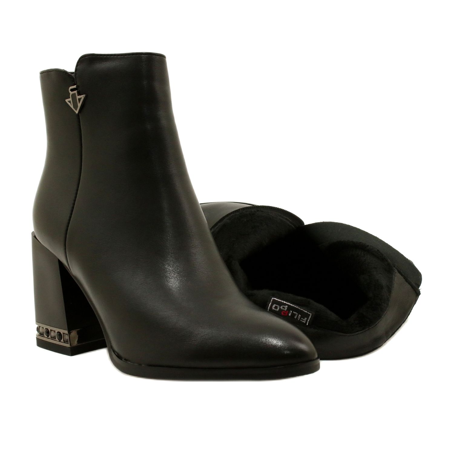 Stílusos és praktikus egyidejűleg - ezek a Filippo fekete csizmái a klasszikus vágást és a látványos részleteket kombinálják. Organic bőrből készült, vastag, rövid szőrme formájában történő szigeteléssel bizonyos választásként fognak működni az őszi téli szezonra. A cirkonokkal felrobbant dekoratív oszlop (8 cm) elegáns eleganciát ad nekik, és a mandula orr finoman vékony az ábrán.
