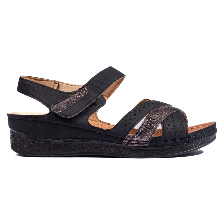 Nyíltan vágott és nyitott sarkuk megfelelő szellőztetést biztosít, ami tökéletes választást jelent a meleg tavaszi és nyári napokhoz. A 4 cm magasságú magas platform hozzáadja az eleganciát, miközben garantálja a kényelmet sétáláskor. A felhasználók értékelni fogják a tépőzáras bezárást, amely lehetővé teszi a szandálok egyszerű és gyors felhelyezését és eltávolítását.