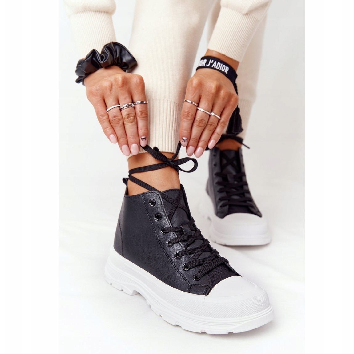 Részletek: Női fekete Trissy bőr cipők nagy talpon