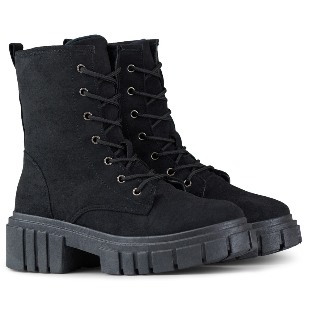 Női velúr csipke -Up csizma - Munkavállalók, Fekete