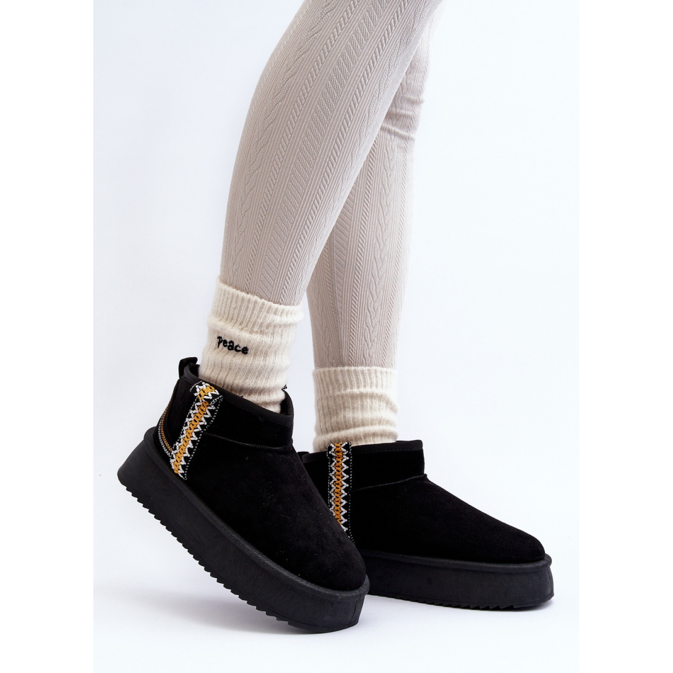 Egy elegáns boka felső, amely rendkívül divatos aztékmintával díszíti, megragadja a szemét, és hozzáadja az egyediséget a stilizáláshoz. A cipő belsejét puha szőrrel párnázják, amely egész nap hőt és kényelmet biztosít.