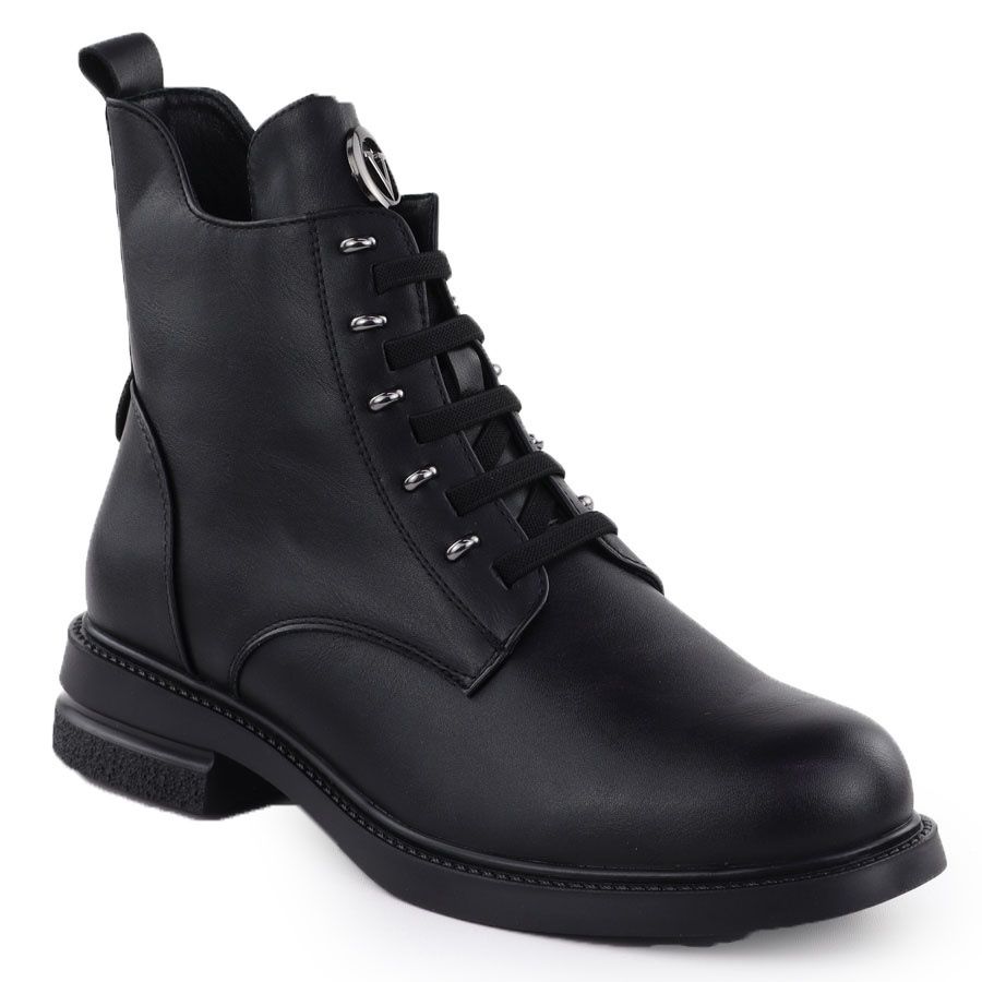 A csizmákat egy klasszikus fekete színű különbözteti meg, amely tökéletesen megy a különféle stilizációkkal - alkalmi és elegánsabb. Körülbelül 14,5 cm -es és 3,5 cm magasságú, lapos sarkú felső felső részének köszönhetően megfelelő támogatást nyújtanak a lábhoz és a kényelemhez egész nap.