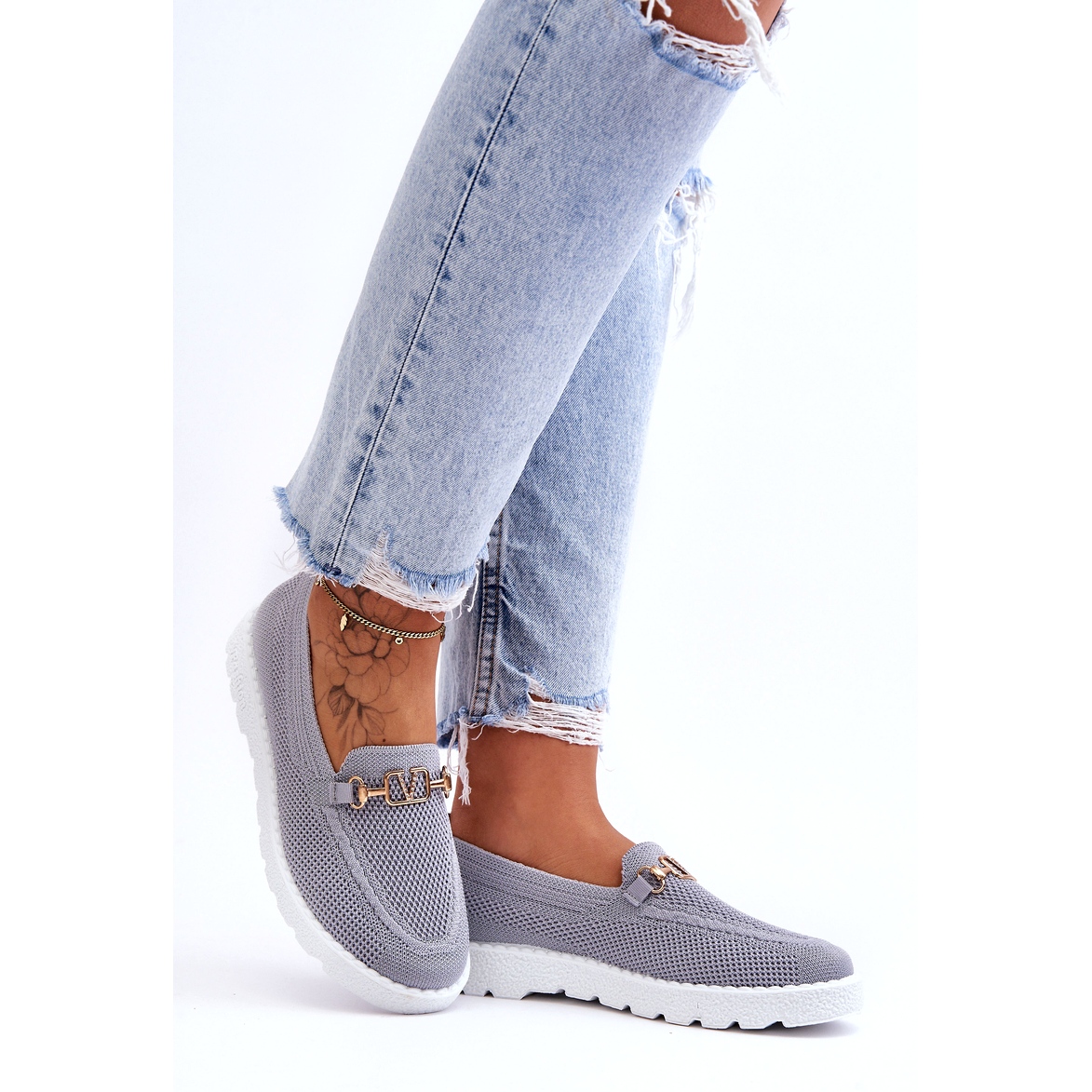 **PM1 női bebújós tornacipő szürke Alena díszítéssel**