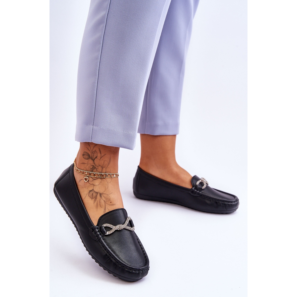 Elegancia és kényelem a mindennapokra – FC3 női bebújós mokaszinok fényes fekete díszítéssel This Moment