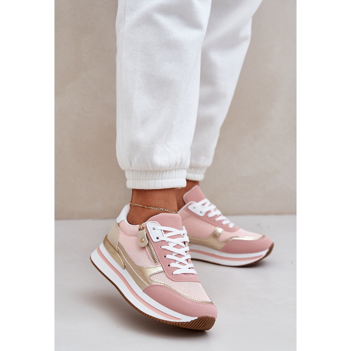 Részletek: Női fényes sportcipő a platformon rózsaszínű