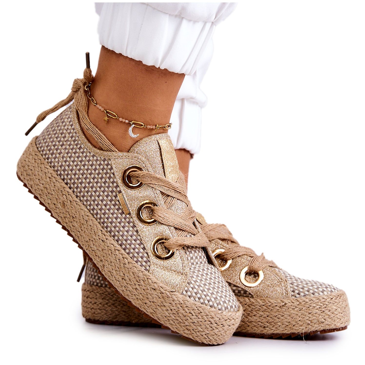 Részletek: Női fonott tornacipő Big Star JJ274392 bézs és arany színben