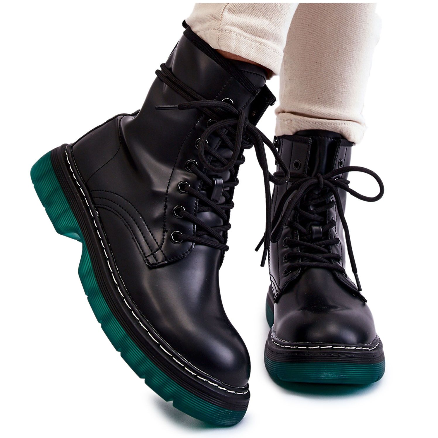 Inna marka Női fűzős csizma zöld talppal, fekete Trinah