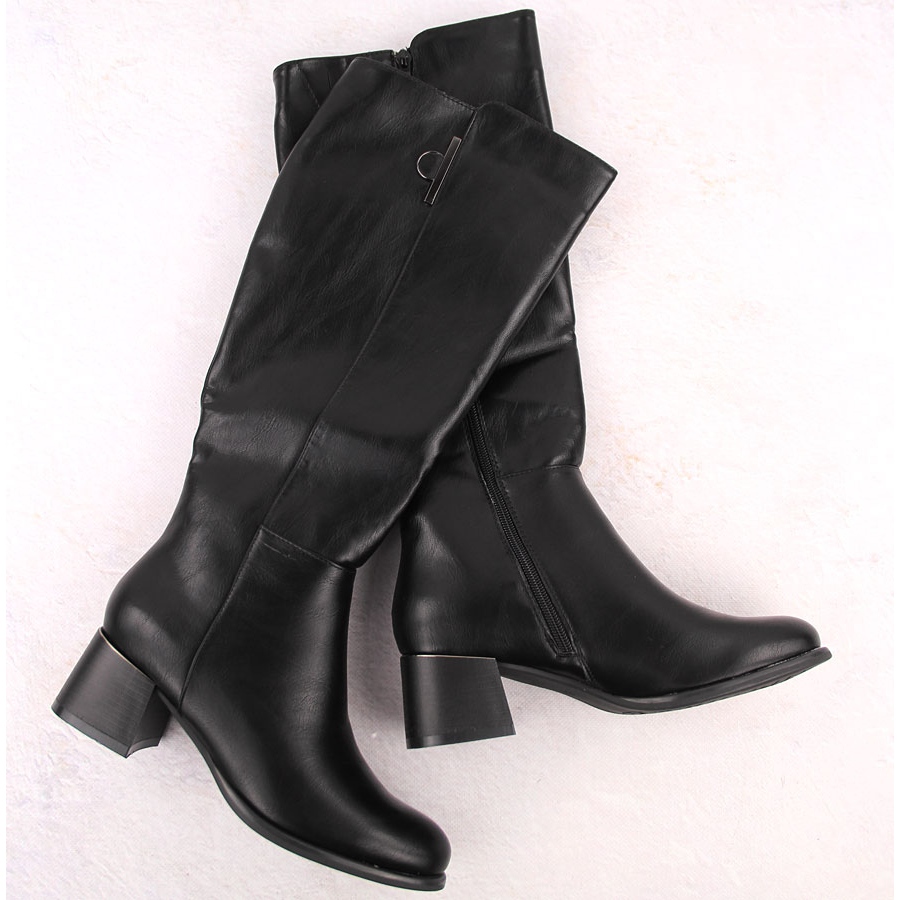 Az 5 cm -es magas oszlop eleganciát és kényelmet ad, így ezeket a csizmákat tökéletes választásnak mind naponta, mind különleges alkalmakkor. A kerek orr- és fekete színű csizmák jól illeszkednek a különféle stilizációkhoz, az alkalmi és a formálisabbak.