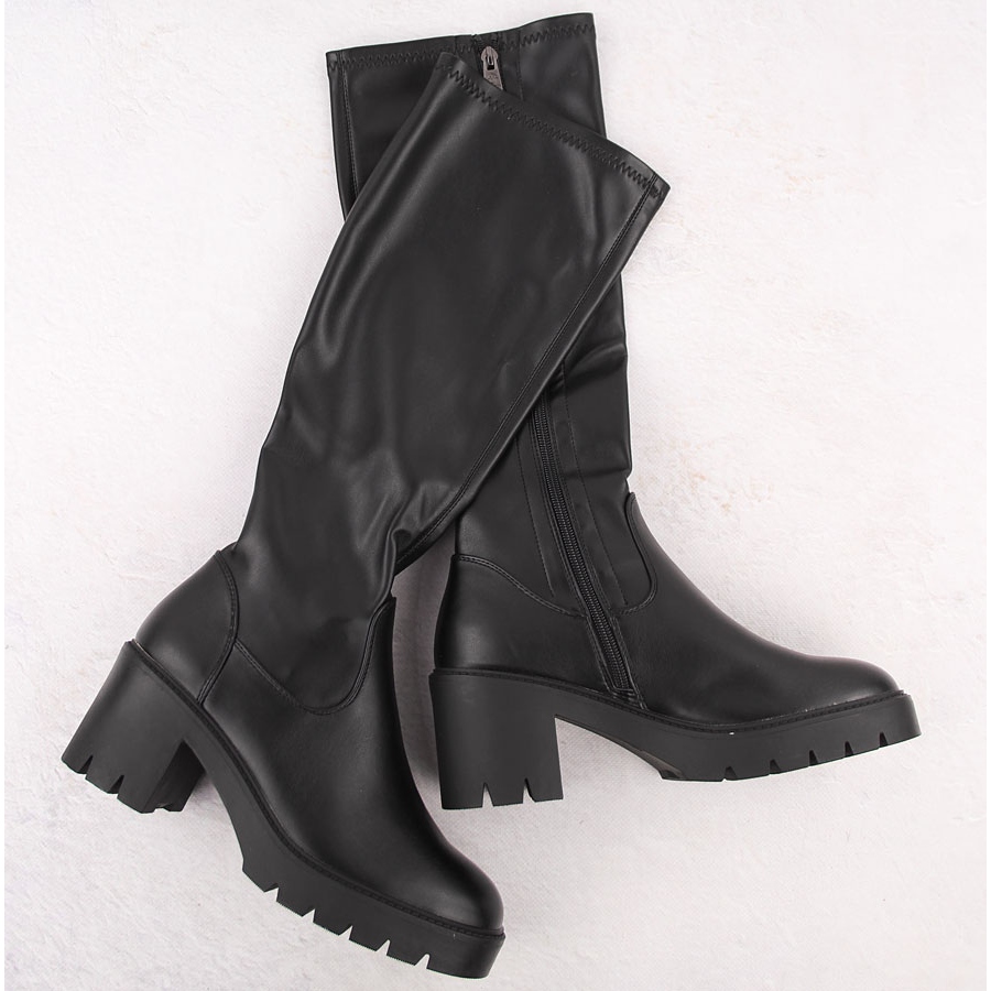 A nők magas sarkú cipője és a platform szigetelt Black Vinceza 58332 a tökéletes választás hűvösebb napokhoz. A magas színvonalú ökológiai bőrből készült, ezek az elegáns csizmák ötvözik a modern kialakítást és a használat kényelmet.