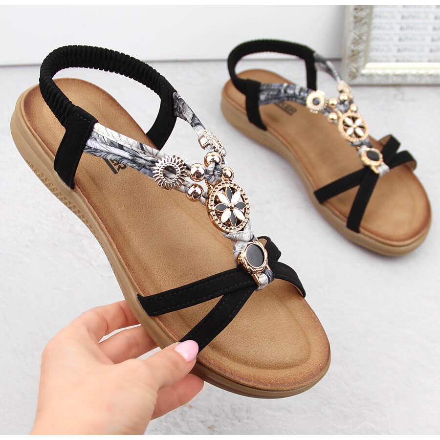 Kiváló minőségű ökológiai bőrből készül, a szandált egy elegáns, klasszikus vágás jellemzi, amely tökéletesen illeszkedik a jelenlegi trendekhez. Minimalista fekete színük gyakorlatilag bármilyen stílushoz illeszkedik, az alkalmi és a formálisabb. A cirkonok és strasszok formájában lévő további akcentusok eredeti karaktert adnak nekik, megkülönböztetve őket a többi modelltől.