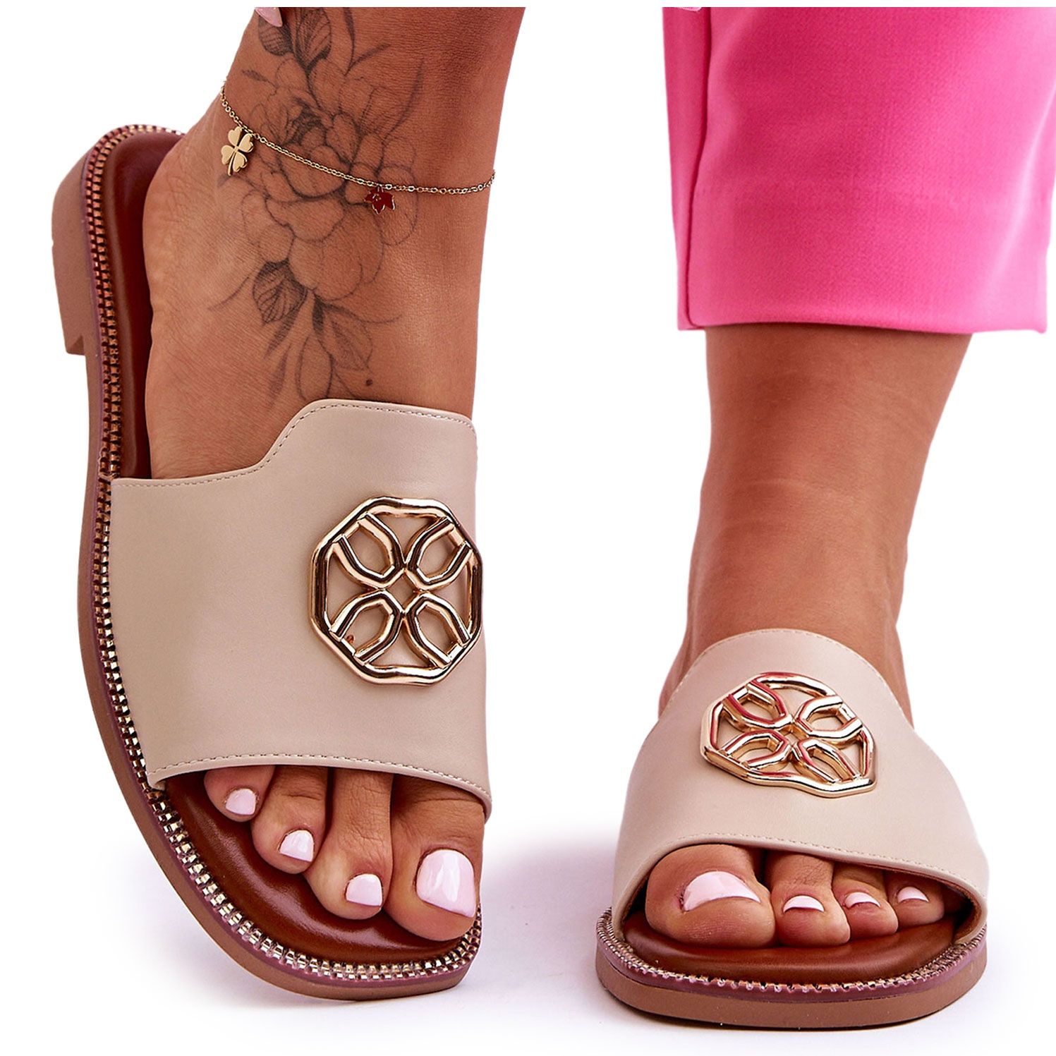 Inna marka Női klasszikus lapos sarkú szandál bézs Larotte