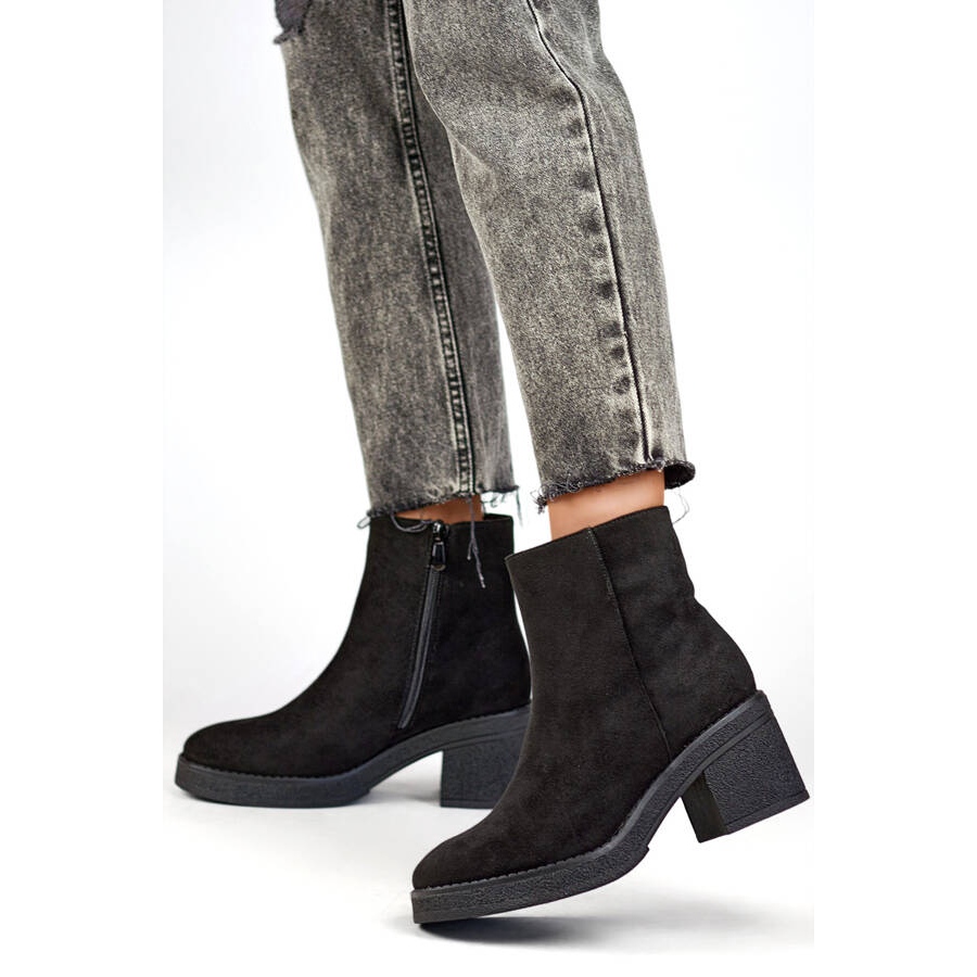 Ökológiai velúrból készült csizma elegáns, fekete színű, ami sok stílushoz kiváló alapot jelent. A cipzáras rögzítőelem lehetővé teszi a gyors és kényelmes felhelyezést és leválasztást. Az ökológiai bőrbetét gyalogláskor kényelmet nyújt, és a standard nyújtás miatt a csizma jól alkalmazkodik a lábhoz.