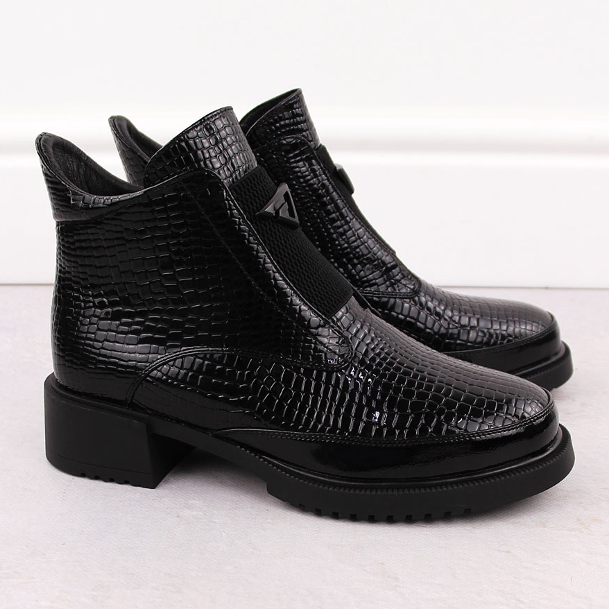 Részletek: Női lakkbőr bokacsizma, fekete, Filippo DBT6663