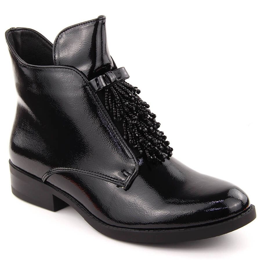 Részletek: Női lakkbőr bokacsizma gyöngyökkel, fekete S.Barski
