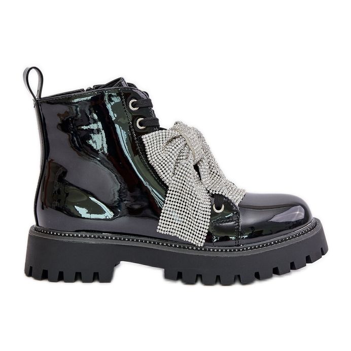 Részletek: Női lakkbőr bokacsizma masnival, Black Ocenttia fekete