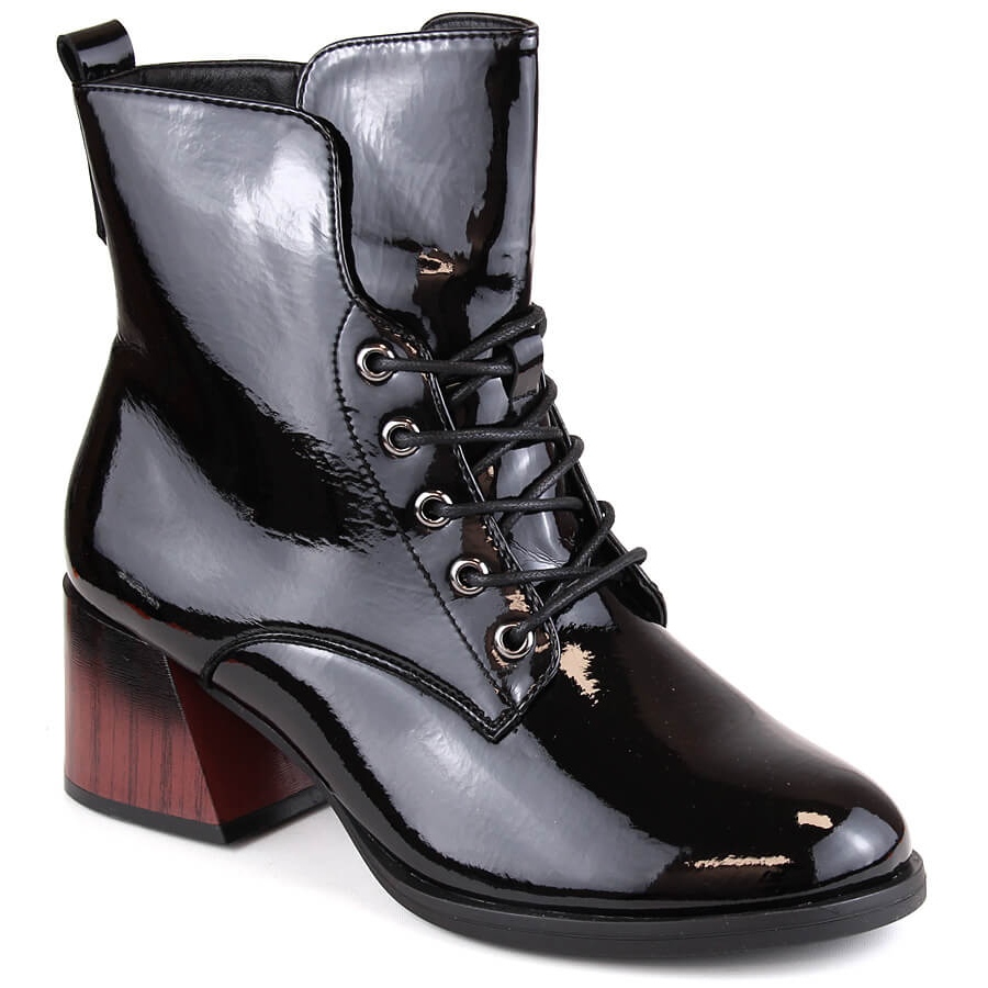 Részletek: Női lakkbőr hőszigetelt magas sarkú csizma, fekete Vinceza 58127
