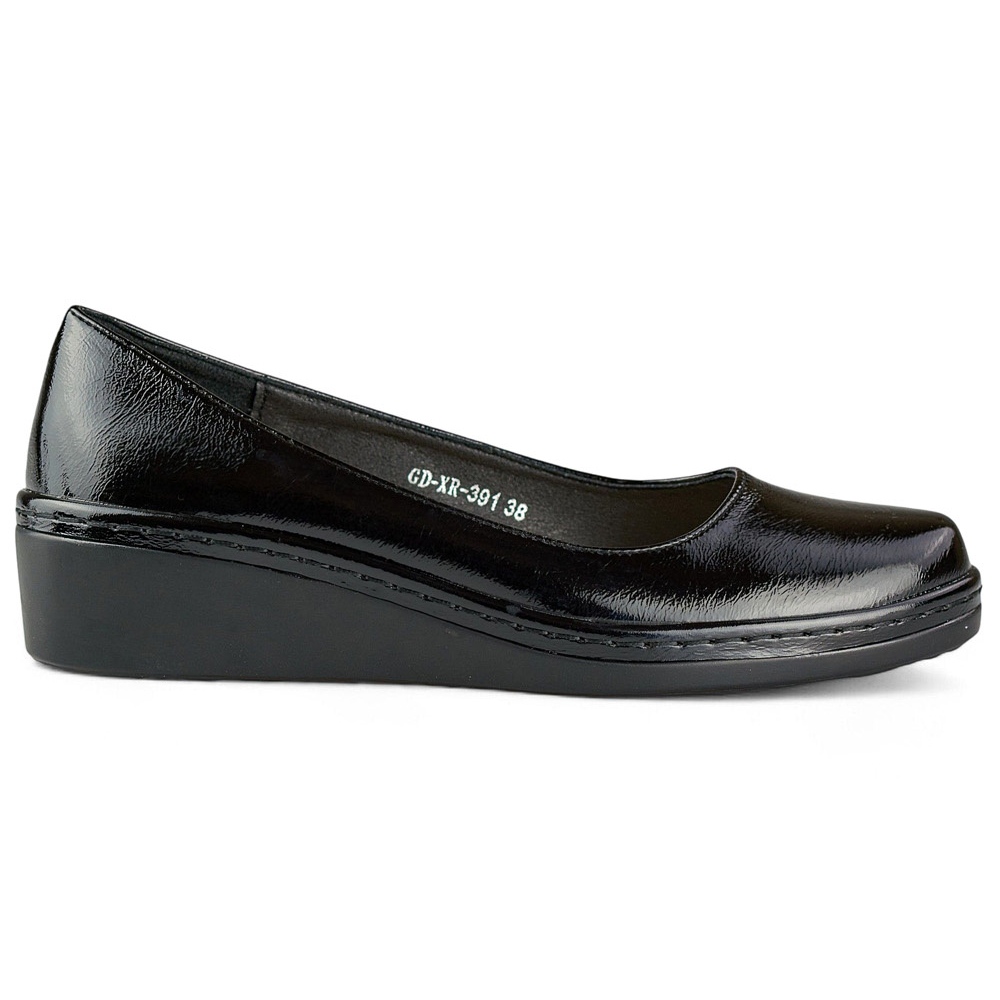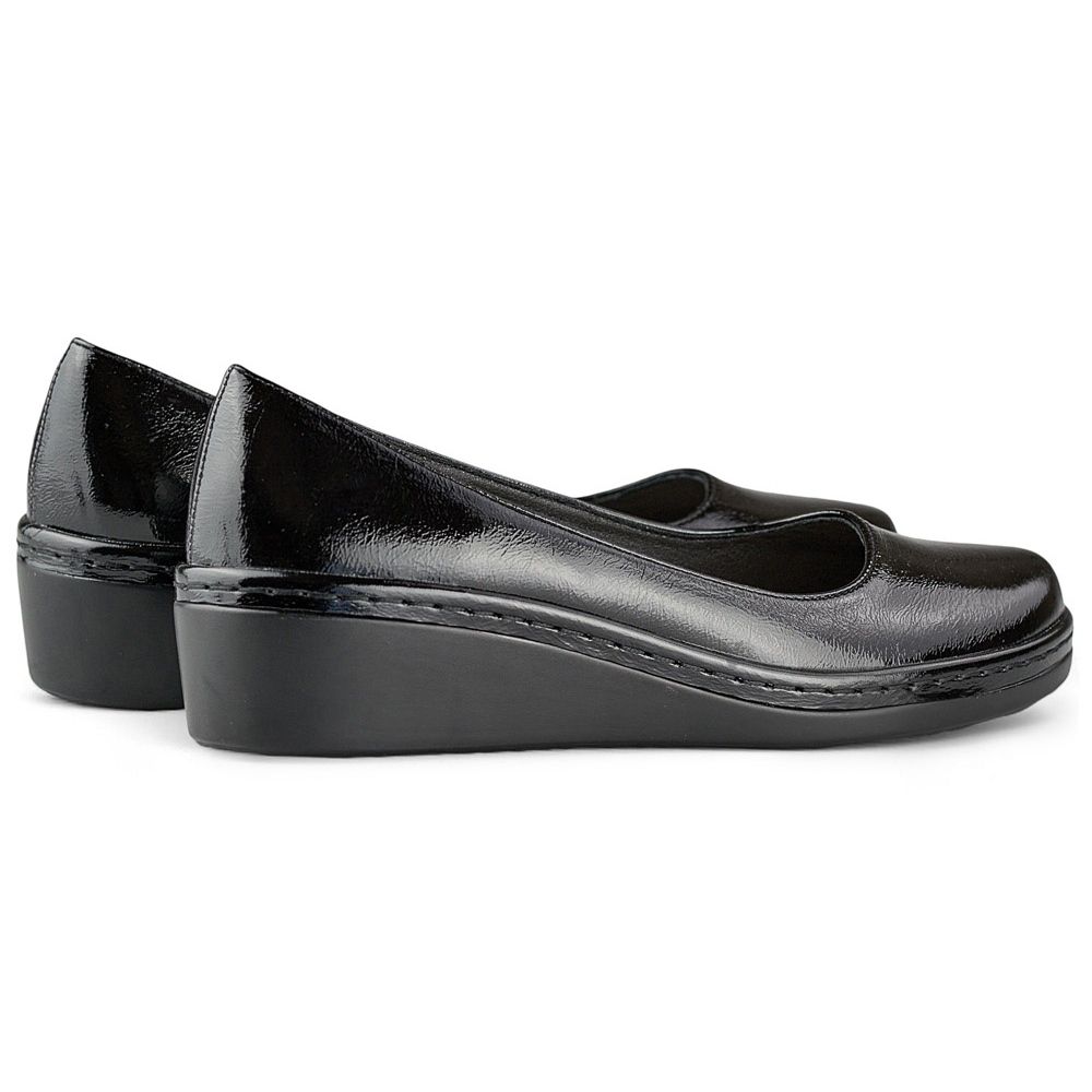 Részletek: Női lakkfekete szivattyúk alacsony ékekkel