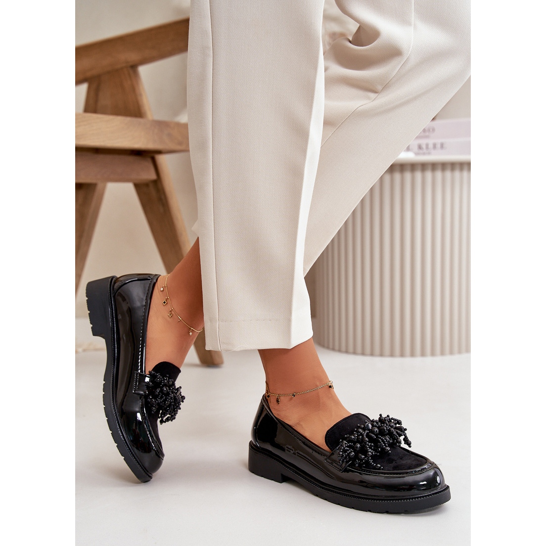 S.Barski S.Barski Női lakkozott cipők S. barski hy369a fekete díszítéssel