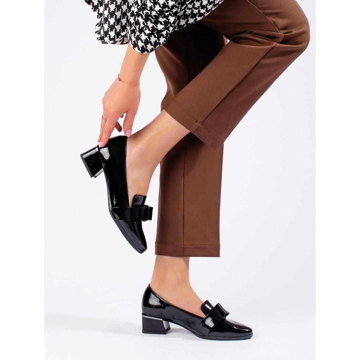 Részletek: Női lakkozott magassarkú cipő fekete masnival Vinceza