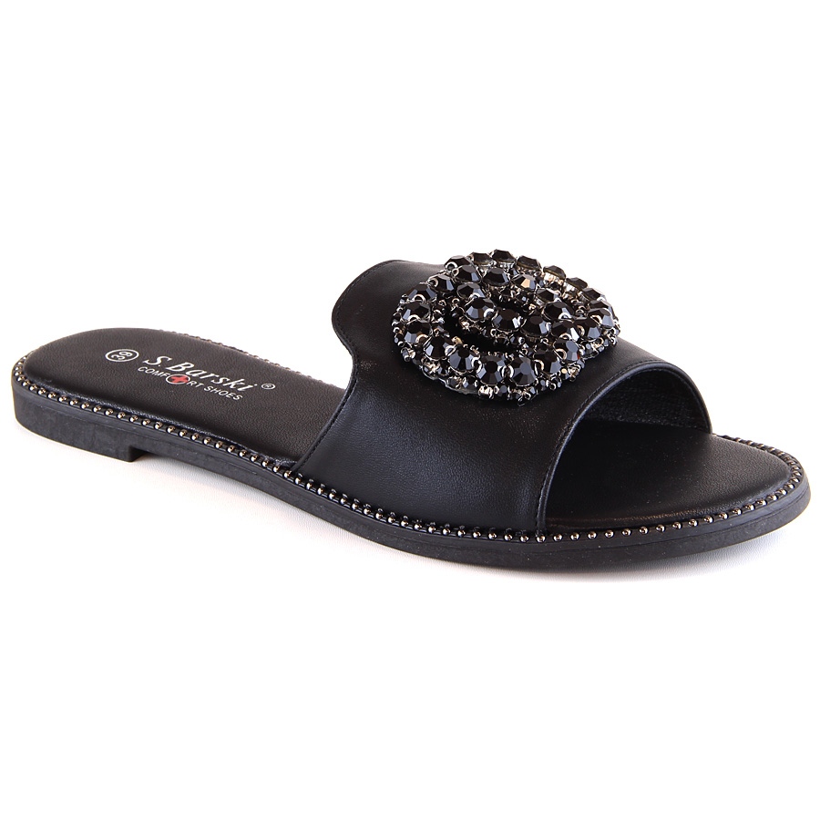 Részletek: Női lapos kényelmes papucs cirkóniákkal fekete S.Barski Kv 520-30