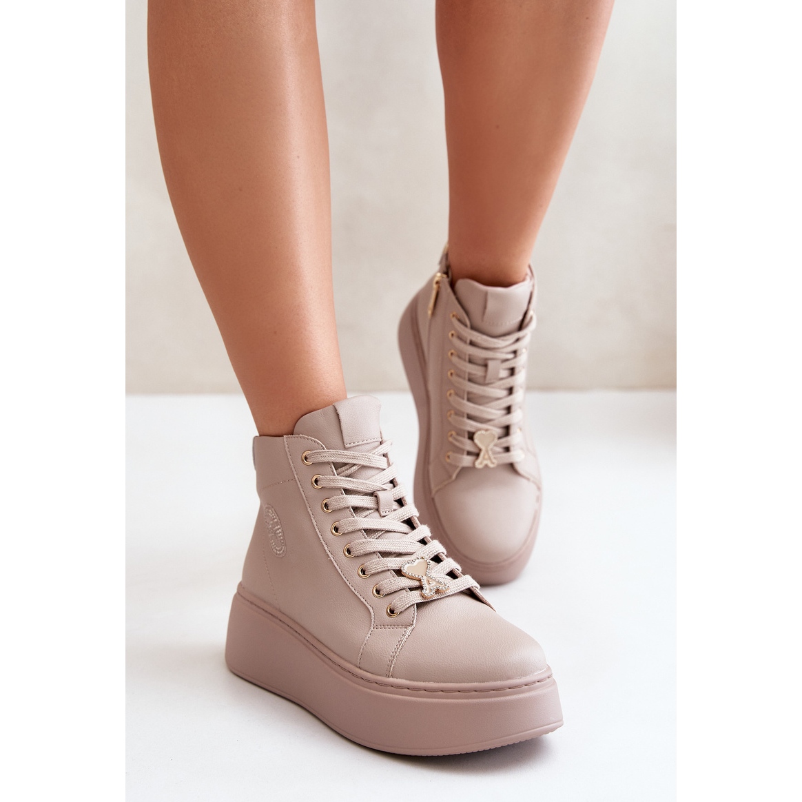 Részletek: Női magas bőr tornacipő Vinceza 66707 bézs platformon