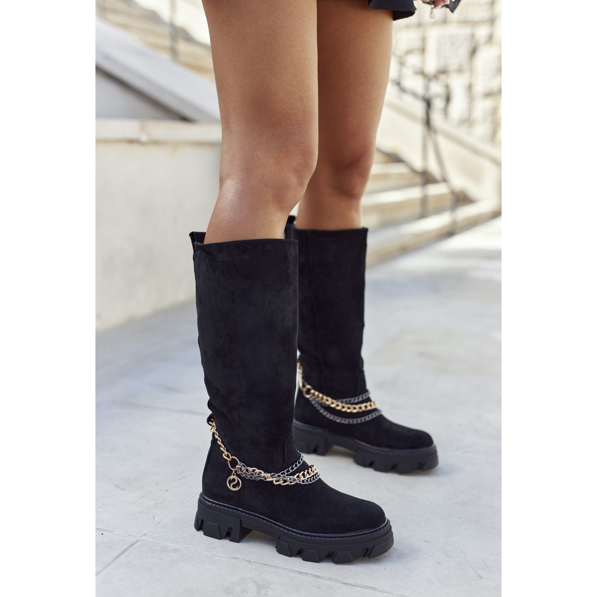 Fedezze fel az eleganciát és a kényelmet a klasszikus fekete női PS1 csizmában. Ez a stílusos térdcsizma kiváló minőségű velúr ökológiai bőrből készült, ami rendkívül vonzó megjelenést és egyben környezetbarát megjelenést biztosít.