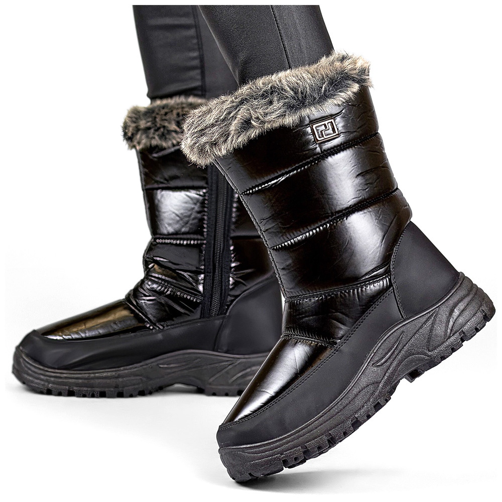 Részletek: Női magas, fekete hőszigetelt hócsizma bundával, meleg téli cipő