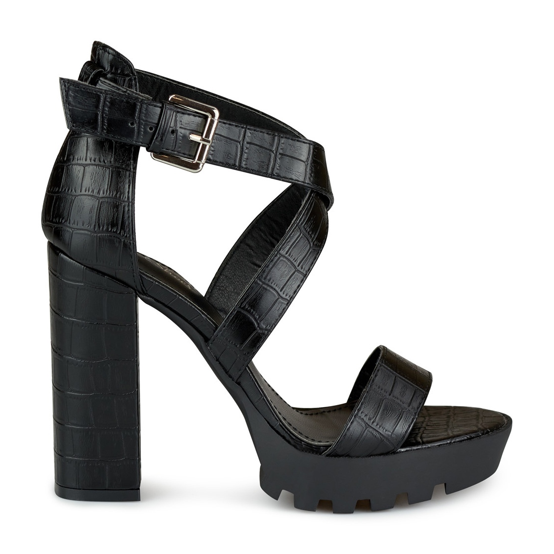 A kiváló minőségű ökológiai bőrből készült szandálok eredeti krokodilbőr-mintázattal rendelkeznek, amely egyedi karaktert ad nekik. A fekete színnek köszönhetően sok stílushoz passzolnak, stílust és eleganciát adva hozzájuk. A nyitott lábujjak és a kényelmes csatos rögzítés garantálja a könnyű felhelyezést és a lábhoz való tökéletes illeszkedést.
