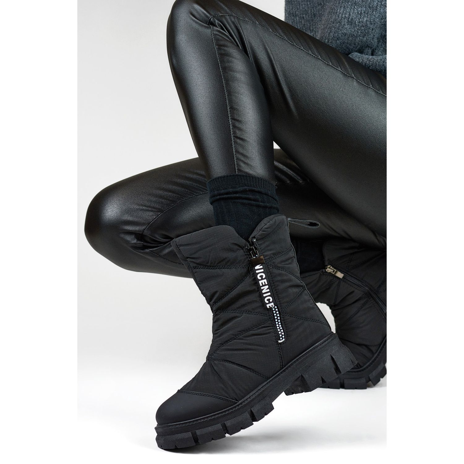 Stílusos és praktikus hócsizma klasszikus fekete színben - tökéletes téli napokra. A magas és a lágy melegítés még alacsony hőmérsékleten is melegíti a cipőt, és a szintetikából származó szilárd talp biztosítja a stabilitást és a kényelmet a mindennapi használat során.