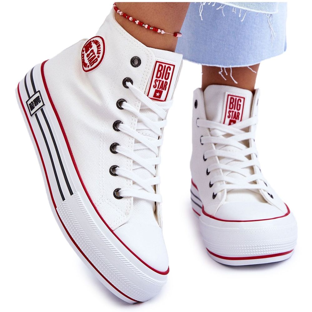 Részletek: Női magas textil tornacipő Big Star LL274185 fehér