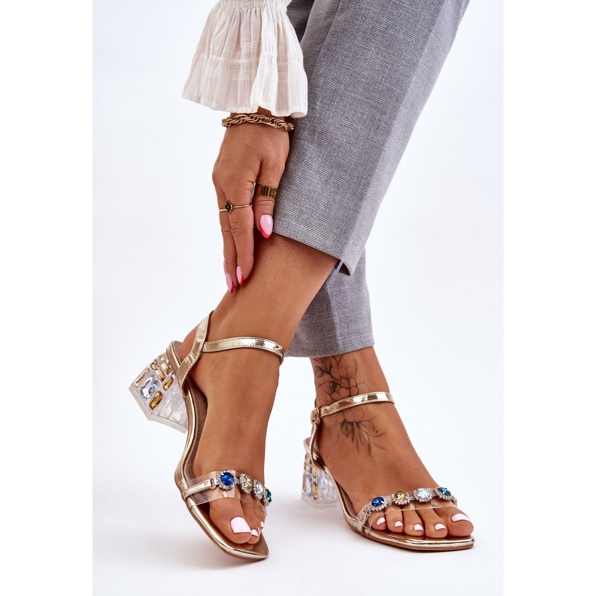 S.Barski S.Barski Női magassarkú szandál arany Esma kristályokkal aranysárga