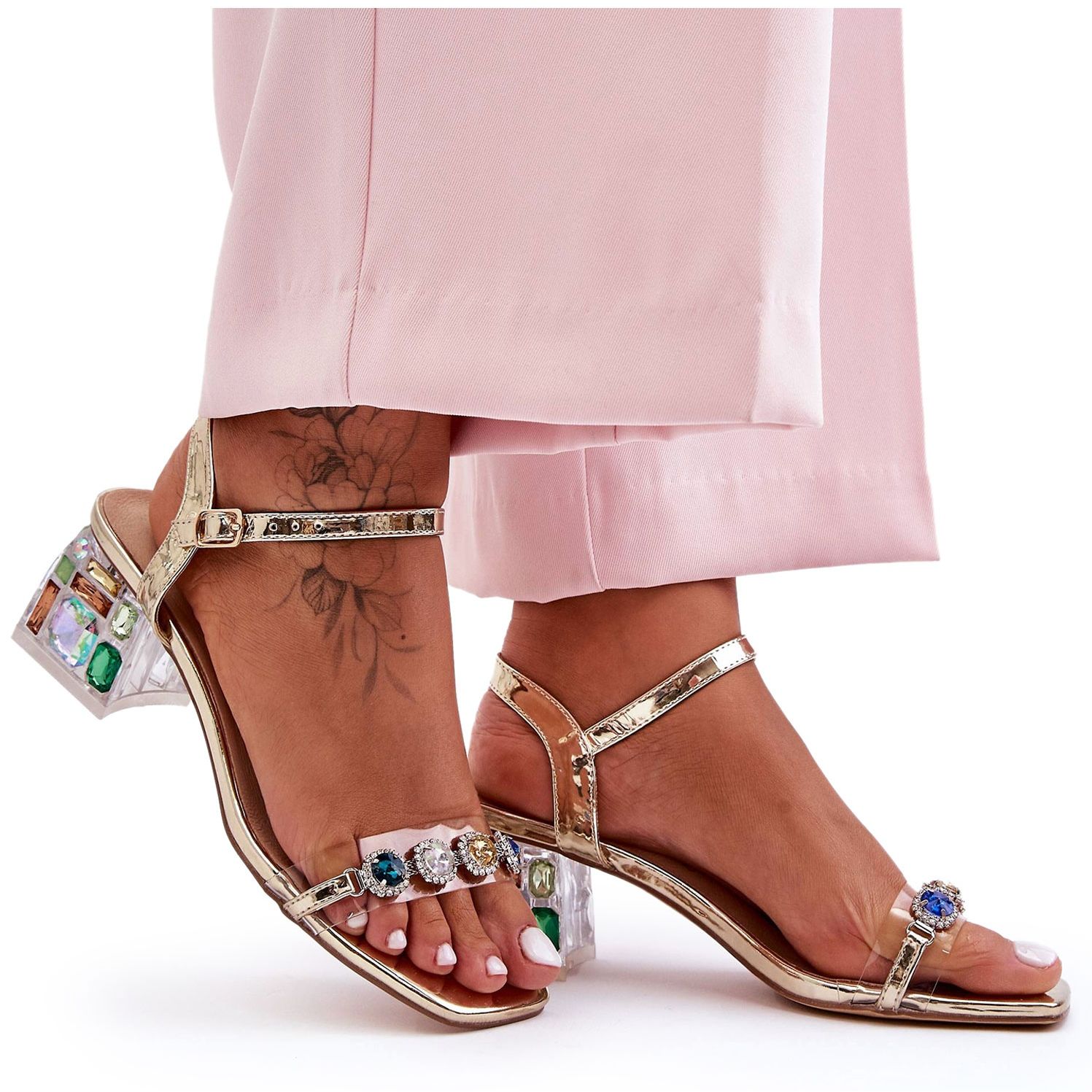 Részletek: Női magassarkú szandál kristályokkal, Golden S.Barski MR1037-01 aranysárga