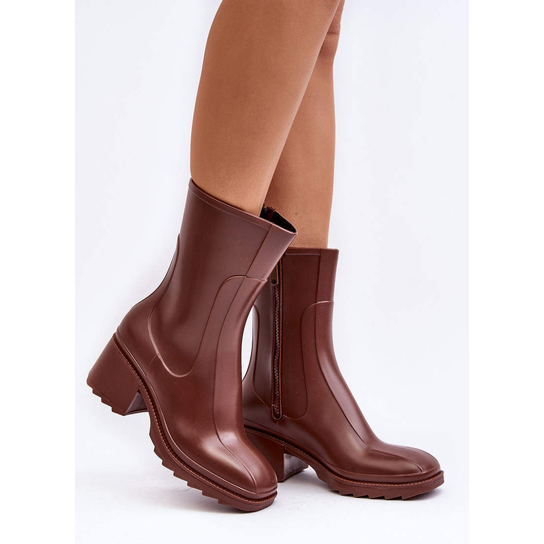 Részletek: Női matt Wellington csizma magassarkúval, barna Bertaida