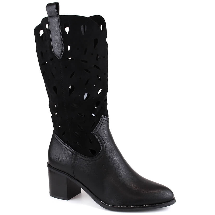 Részletek: M. DASZYŃSKI Női meleg áttört cowboy csizma fekete M.Daszyński MR2337-3