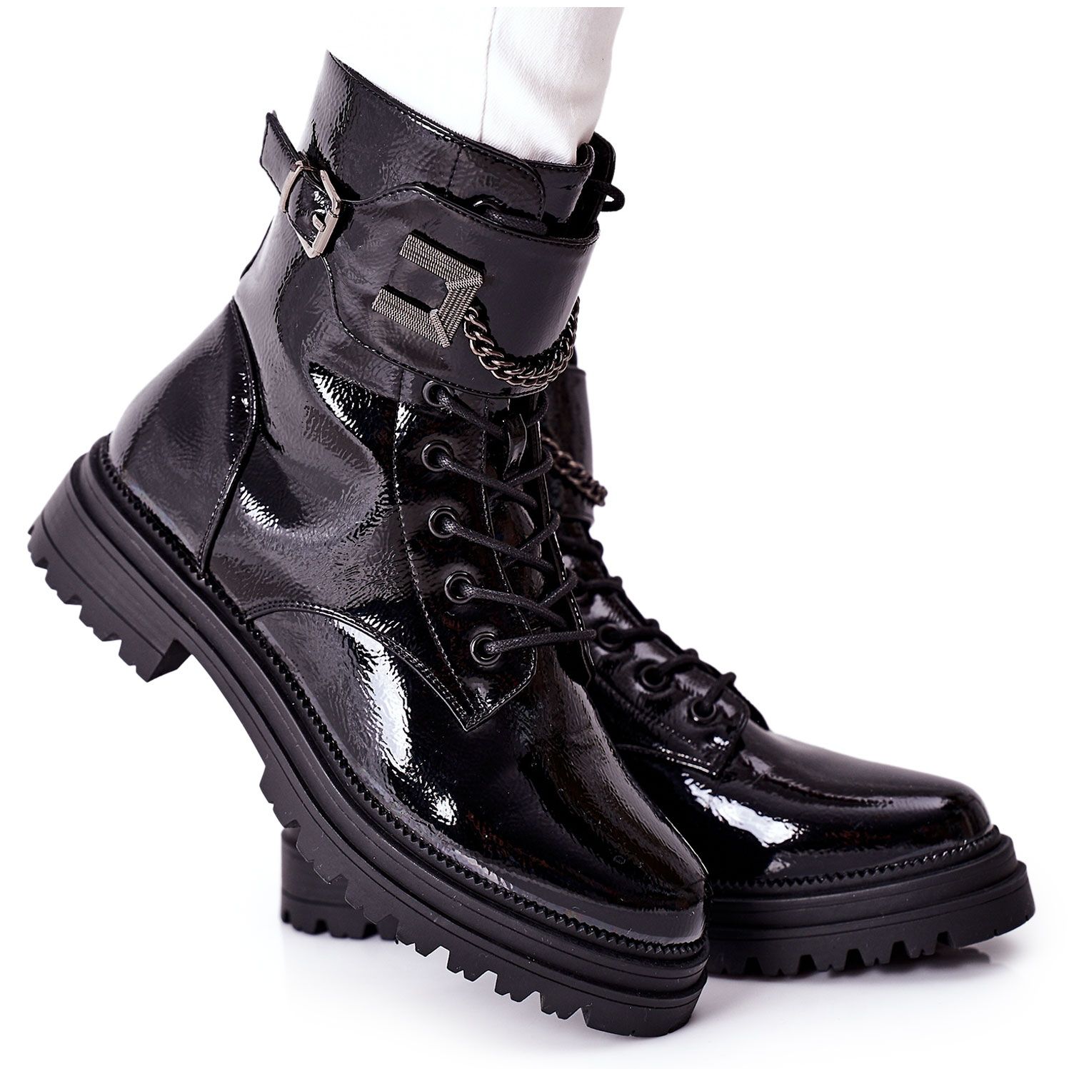 Ökológiai lakkbőrből készült, ez a bokacsizma fényes felületével vonzza magára a figyelmet, amely bármilyen stílust ragyogóvá varázsol. Az oldalra varrt cipzár használata sokkal könnyebbé teszi a felhelyezést, míg a klasszikus fűzés lehetővé teszi a precíz lábhoz való illeszkedést. A puha bundával szigetelt belső tér meleg és kényelmes marad a lábakban még a leghidegebb napokon is.