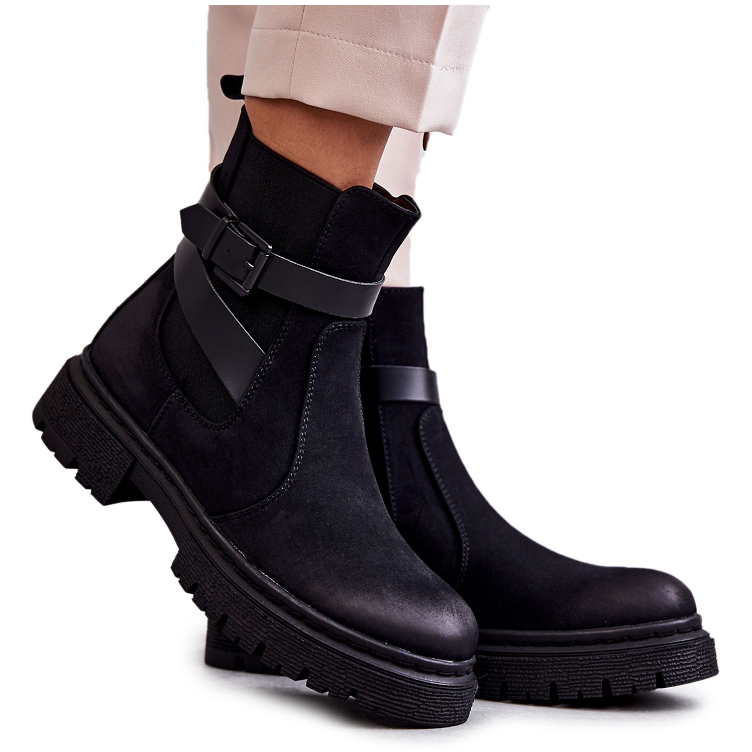 Részletek: FE1 Női meleg csizma Jodhpur csizma övvel Black Jose fekete