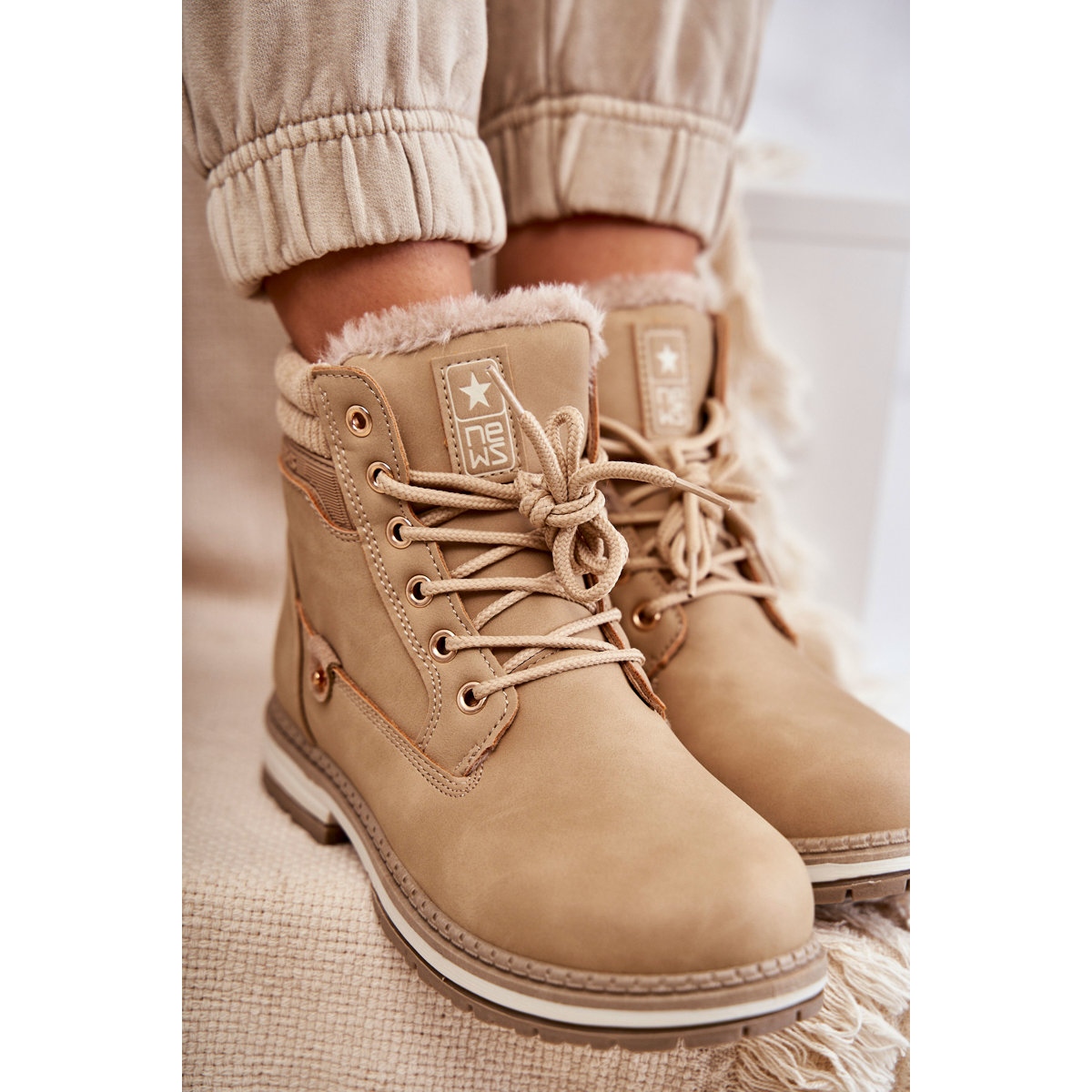 Részletek: PE1 Női meleg csizma Trappers Sötétbézs Liv