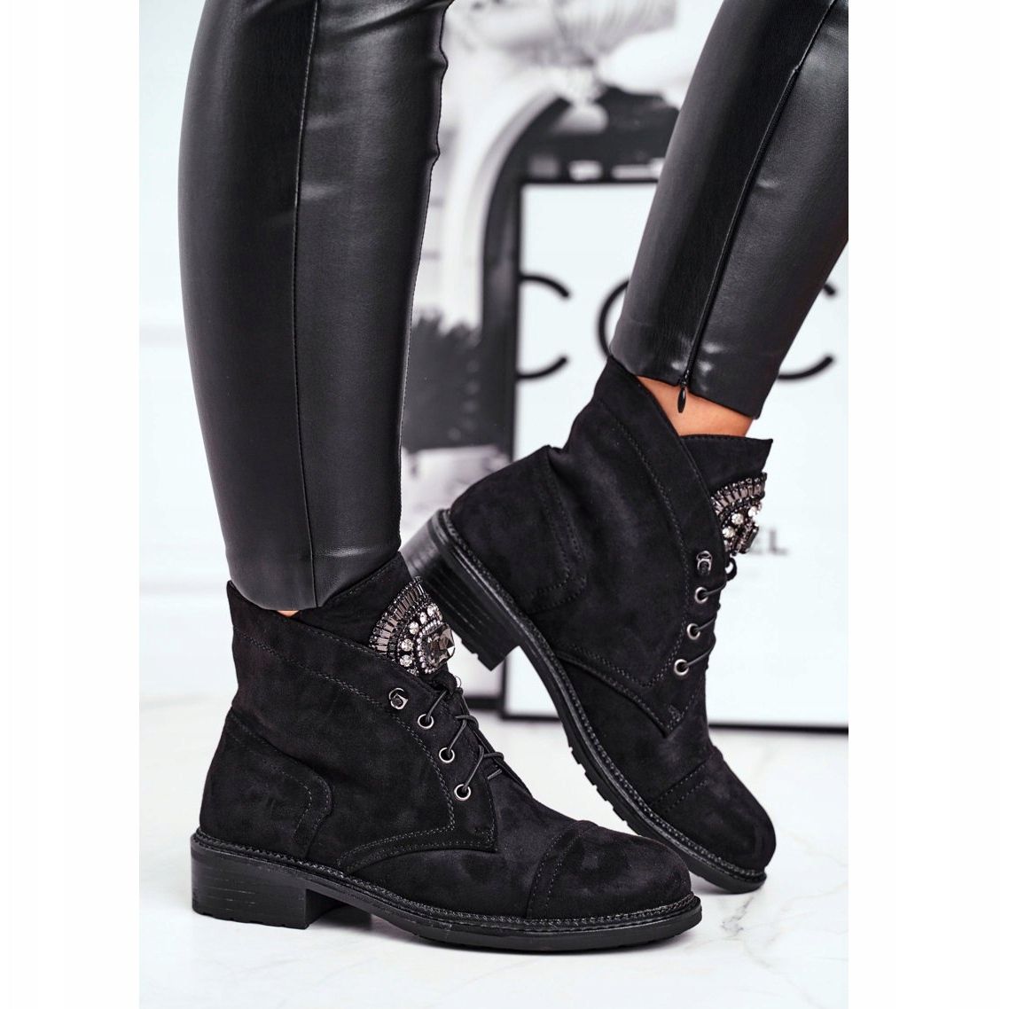 Időtlen kialakításuk lapos sarokkal tökéletessé teszi őket a legkülönbözőbb stílusokhoz – az alkalmitól az elegánsabbig. A felsőrész elején található kristály díszítés egyedi karaktert ad nekik, a kerek orr pedig nemcsak divatossá, de kényelmessé is teszi őket.
