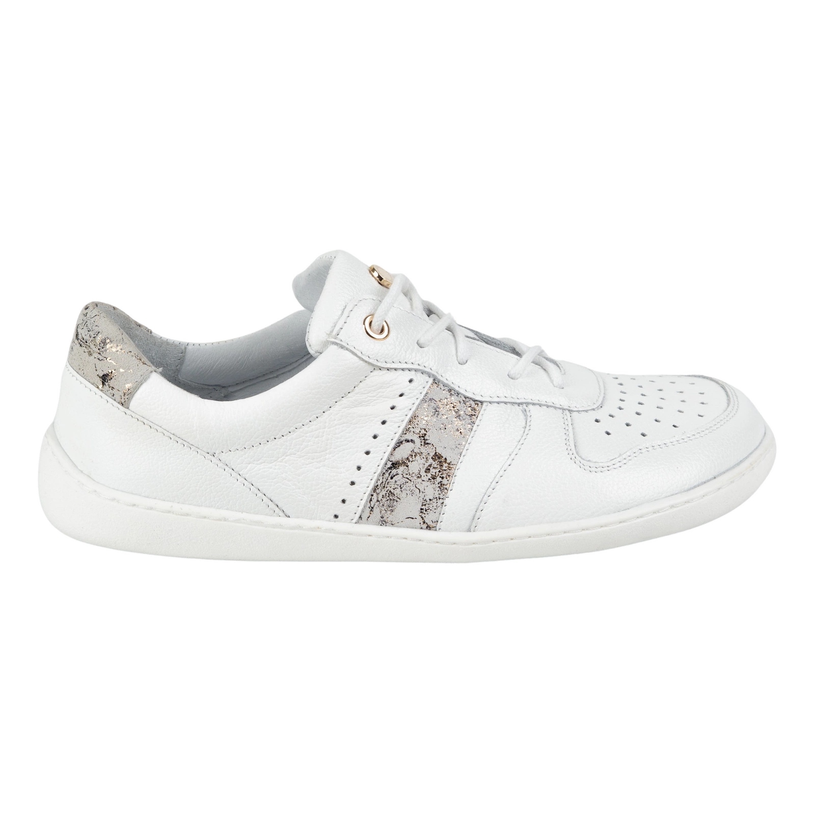 A könnyű, rugalmas mezítláb talp lehetővé teszi a talaj természetes mozgását és tökéletes érzését, ami elősegíti az egészséges gyaloglás módját. A finom nyitott részletek és a fémes díszítések modern karaktert adnak a cipőhöz, harmóniában maradva a minimalista esztétikával. Ez egy ideális javaslat mind a napi sétákra, mind az alkalmi stílusokra, a városi készletektől a sport -eleganciáig.