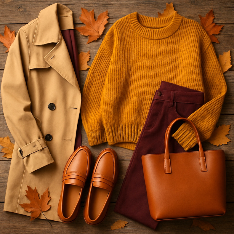 A karamelles vagy konyakcipők elengedhetetlenek az őszi ruhatáradban. Viselje vékony bordó vagy sötét palackzöld nadrággal. Vegyünk fel egy túlméretezett, mustár- vagy gyömbérbarna árnyalatú pulóvert. Ezt a stílust egy hosszú, klasszikus bézs színű trench kabát és egy, a mokaszinokhoz hasonló árnyalatú bőrtáska egészíti ki. Ez a készlet jól működik mind a mindennapi tevékenységek során, mind a kevésbé formális munkakörnyezetben.