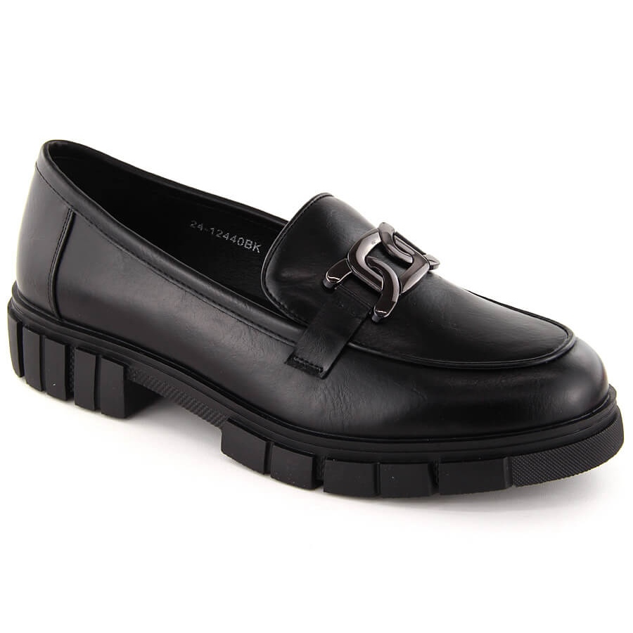 A Moccasins női cipő egy láncú Black Potocki 12440 egy elegáns javaslat, amely minden bizonnyal vonzó az alkalmi stílus szerelmeseinek. Kiváló minőségű ökológiai bőrből készültek, garantálják nemcsak az esztétikai megjelenést, hanem a viselkedés kényelmét is. Természetes bőr betéttel felszerelve hosszú távú felhasználást tesz lehetővé a kellemetlenség érzése nélkül.