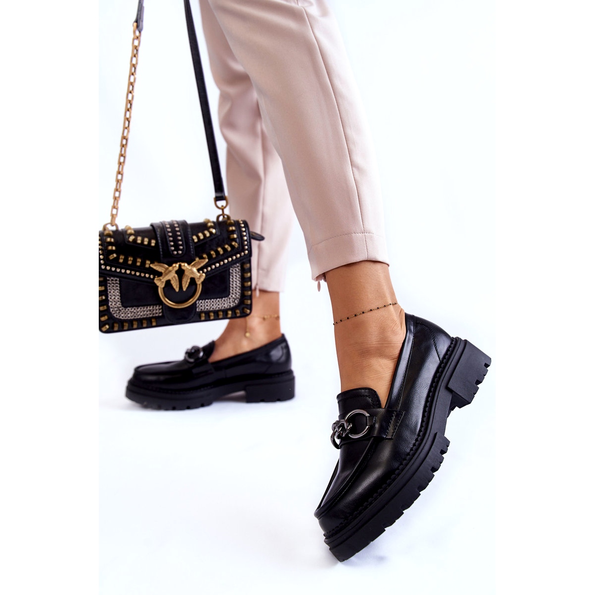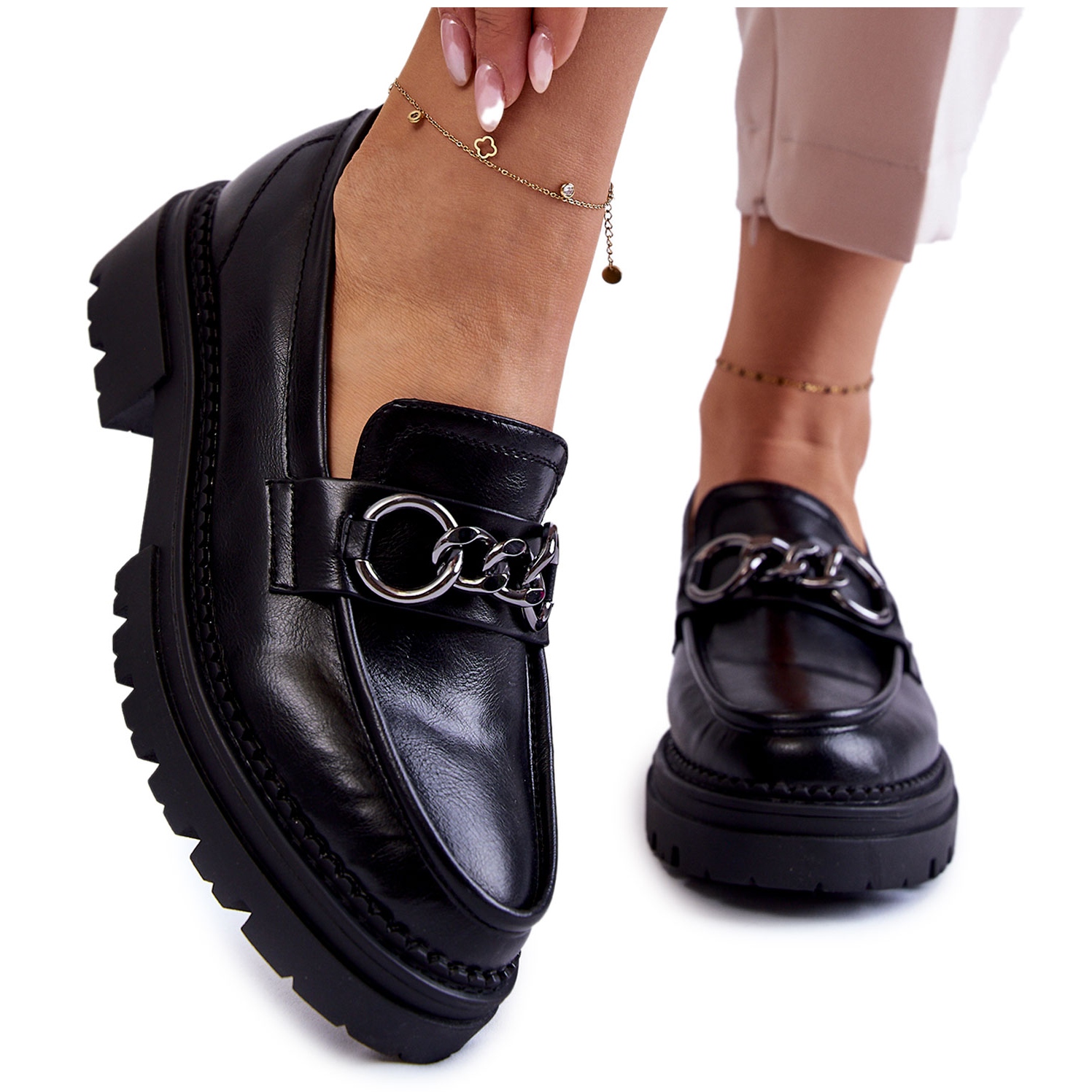 Női öko-bőr cipő la.fi-styish loays, amelyek ötvözik az eleganciát a mindennapi kényelemmel. A magas színvonalú ökológiai bőrből készült sima, fekete felső, dekoratív lánc díszített, amely hozzáadja a karaktert, és a cipőket nagyszerűen működteti mind az irodában, mind a barátokkal való találkozók számára. Klasszikus, kerek orr és egy csúszás, rögzítve, garantálja, hogy egész nap kényelmesen felhelyezzék és viseljék.