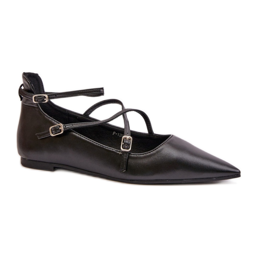 Részletek: Női ökobőr balettlapos hegyes orrral, Fekete