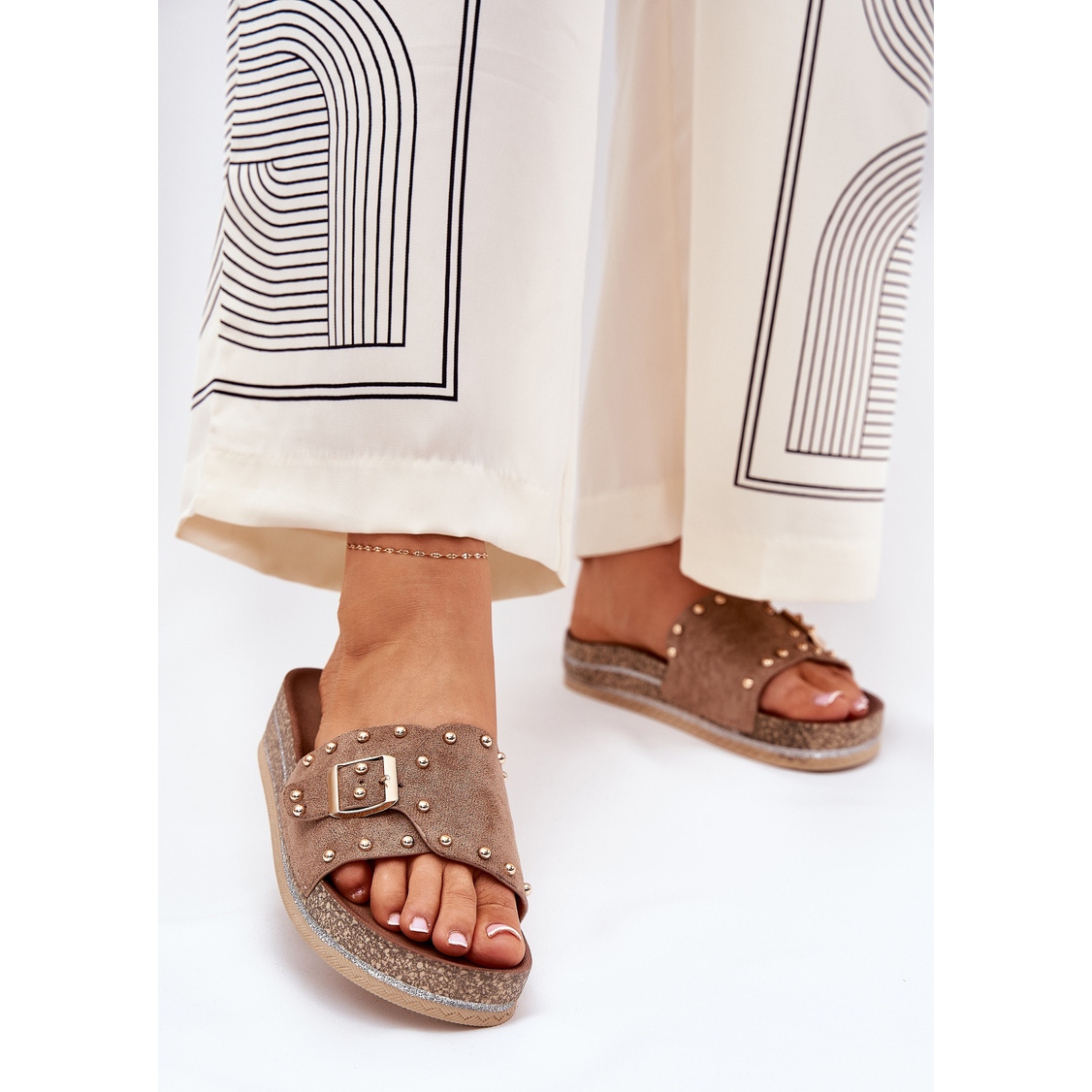 Inna marka Női papucs a platformon csatával és khaki csapokkal bézs