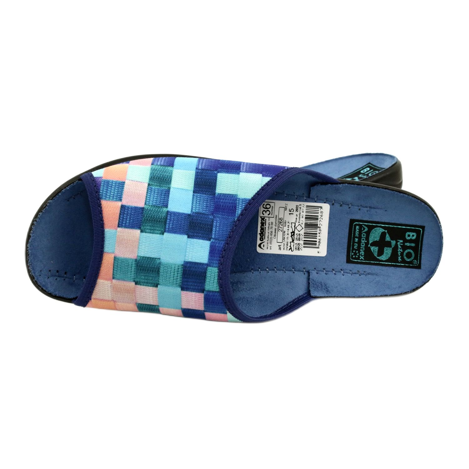 Az Adanex 27268 SAK1 női papucs kiváló választás azoknak a nőknek, akik kényelmes otthont és stílust keresnek. A kiváló minőségű anyagból készült papucsok modern nyomattal rendelkeznek, színes négyzetekkel, amelyek karakteressé teszik őket. A cipő belseje puha velúr típusú pamutszövettel van bélelve, amely biztosítja a használat örömét és a bőrrel való érintkezés kellemes érzetét.