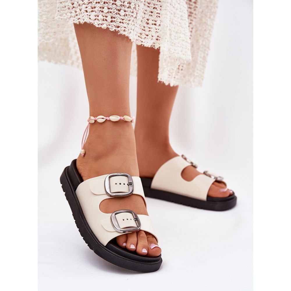 Részletek: Női papucs flopok csatokkal a platformon bézs
