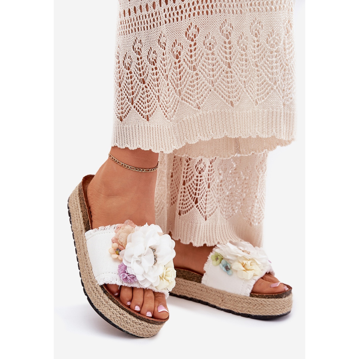 Inna marka Női papucs flopok virágplatformon fehér zsinórral