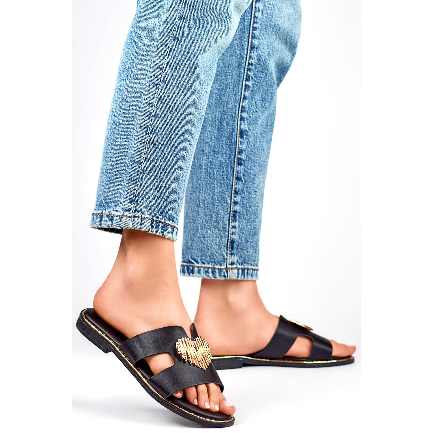 ** Női papucskék, KK-731B szívvel ellátott fekete-elegancia és kényelem a nyárra! **