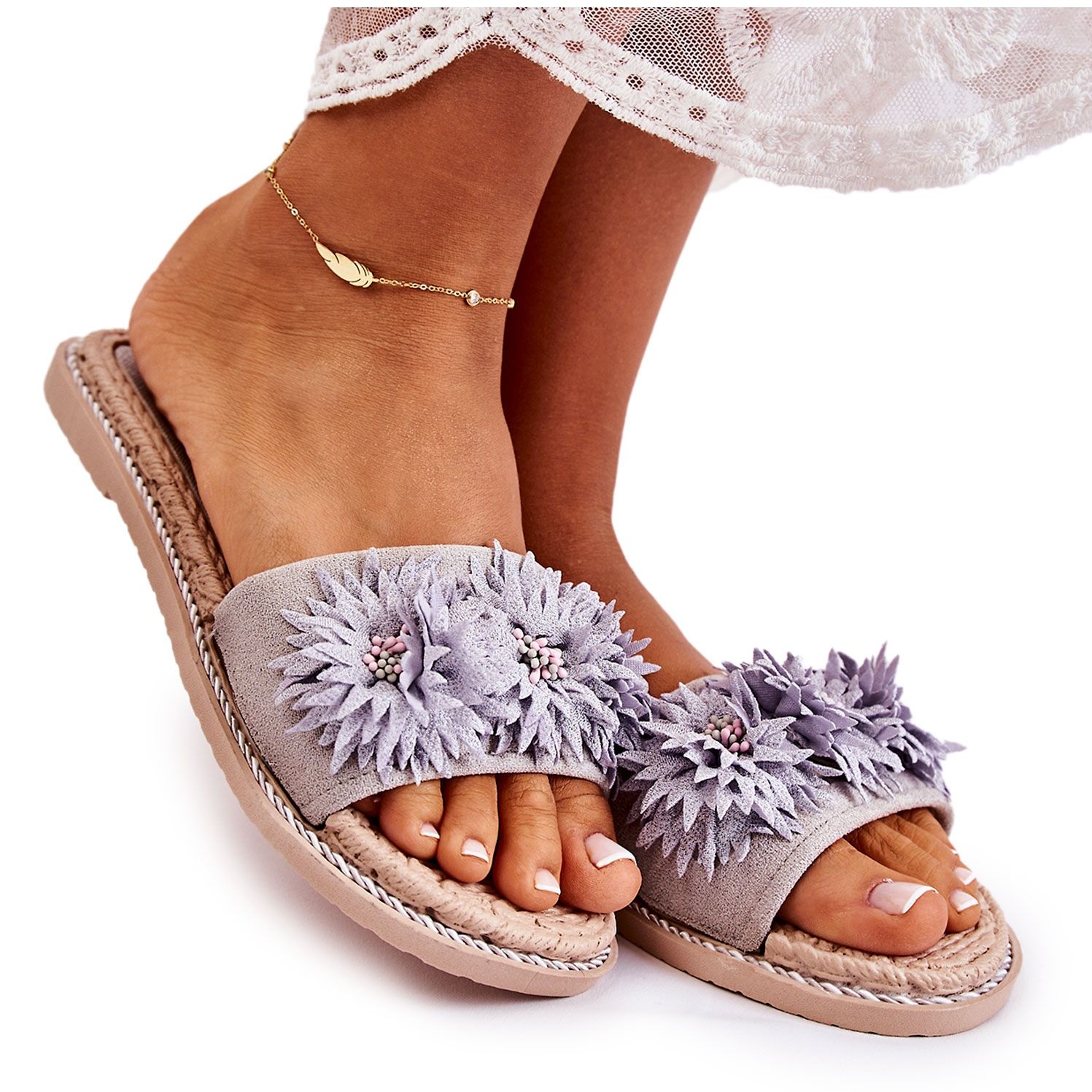 Részletek: WJ1 Női papucs szövet virágokkal, szürke Susana